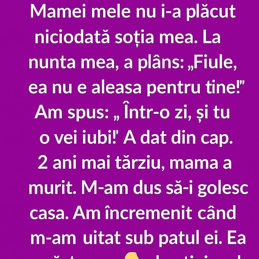 În ziua nunții mele, a plâns și mi-a spus: „Fiule, nu e aleasa potrivită pentru tine!” I-am răspuns calm: „Într-o zi, o vei îndrăgi și tu.” Nu a mai adăugat nimic, doar a dat din cap în tăcere.